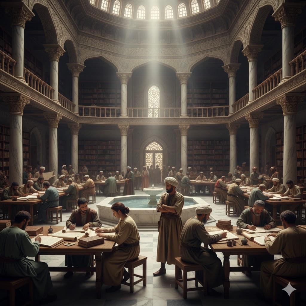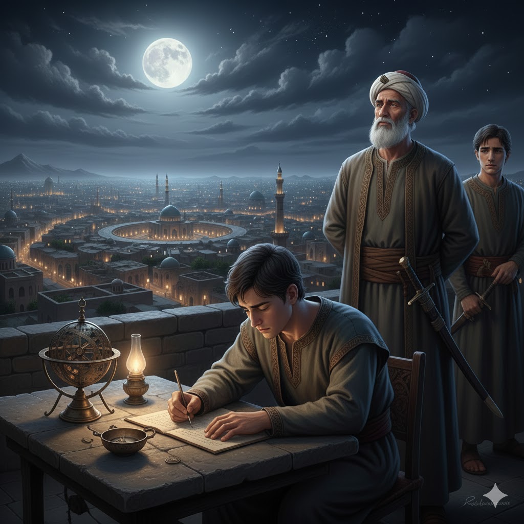 Από εκείνη τη νύχτα ο αλ Μαμούν ορκίστηκε να συγκεντρώσει όλη τη σοφία της οικουμένης. Έχτισε εδώ στη Βαγδάτη, μέσα στις πύλες, έναν τόπο όπου βιβλία, επιστήμες, και λαοί θα συναντιούνταν όπως οι μεγάλοι ποταμοί που όλοι συναντιούνται στη θάλασσα.