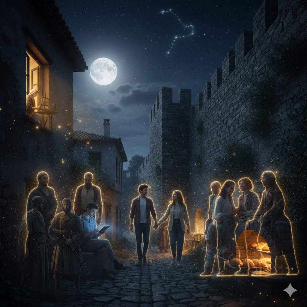 Ακόμα και σήμερα, αν περπατήσεις στα σοκάκια της Θεσσαλονίκης μια νύχτα με φεγγάρι και σταθείς κοντά στα παλιά τείχη, μπορεί να ακούσεις τον μακρινό απόηχο ενός αργαλειού ή να νιώσεις τη μυρωδιά ενός ζεστού προπυριού στον αέρα. Αν πάλι στρέψεις το βλέμμα ψηλά θα αναγνωρίσεις τα ίδια άστρα του Δημητρίου να σε καλούν σε μαγικά ταξίδια. Να προσέχεις!